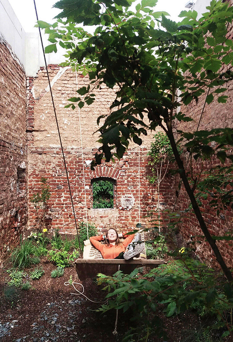 Several of Hesse’s projects further reflect a strong commitment to ecological transformation and social engagement. In Korbach, for instance, the Room of Silence, an abandoned goat stable, has been transformed into a contemplative space open to the sky and filled with plants, representing Korbach’s commitment to renewable energy. In fact, in the middle of the green house, a hammock was attached to ropes balanced by four stones, which metaphorically symbolize the green energy sources the city relies on, such as wind and solar power. This project is a powerful metaphor for both ecological and spiritual regeneration, with the transformed space serving as a gathering point for the community.