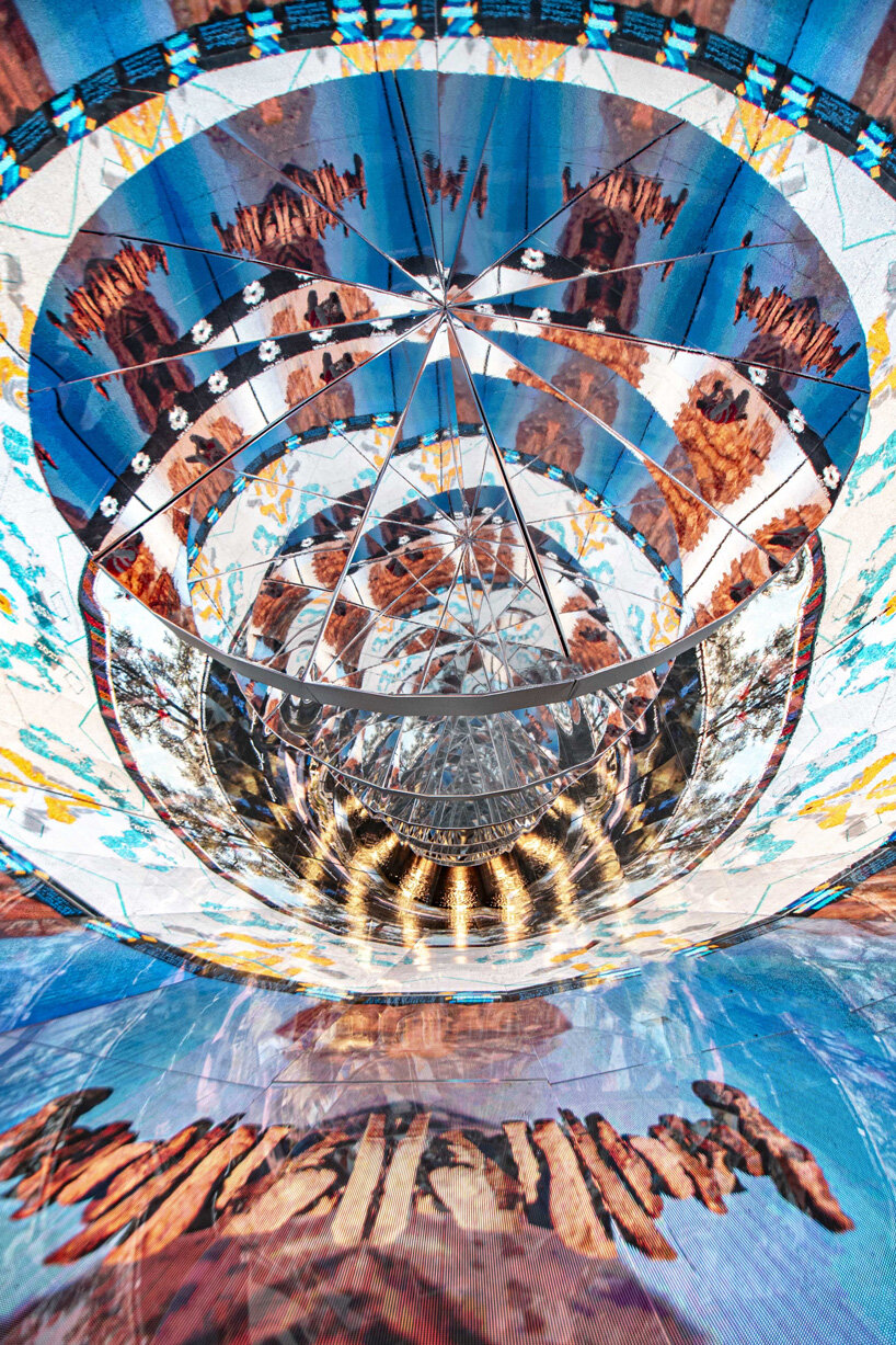 from NEOM to red sea project, STUFISH’s mirror tunnel celebrates saudi arabia’s gigaprojects https://www.designboom.com/art/neom-red-sea-global-stufish-portal-installation-leads-saudi-gigaprojects-vision-2030-09-23-2023/ Sat, 23 Sep 2023 09:30:55 +0000 https://www.designboom.com/?p=1017963 the 40-meter long mirrored installation is segmented into seven kaleidoscopic zones, offering a captivating visual representation of saudi arabia's ambitious gigaprojects.