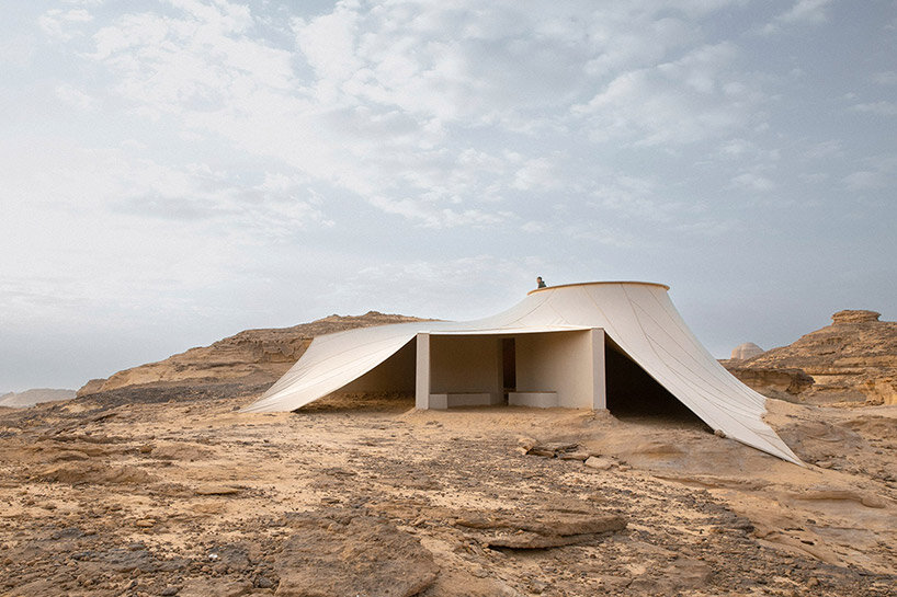 clover studio mimics bedouin tents, scattering hegra viewpoints across alUla desert https://www.designboom.com/architecture/clover-studio-bedouin-tents-hegra-viewpoints-alula-saudi-arabia-12-18-2024/ Wed, 18 Dec 2024 04:10:55 +0000 https://www.designboom.com/?p=1107572 stretched fabric over curved, monolithic walls forms lightweight and removable viewpoints to respect the alUla desert and heritage.