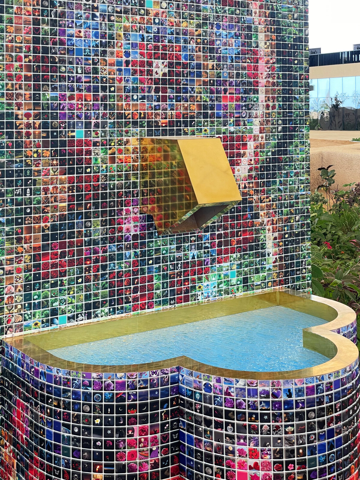 For Anhar Salem, it becomes about examining digital representation as a Muslim today. Her work Media Fountain investigates how globalization, capitalism, and mass media reshape religious rituals and symbols across the world. ‘She has tapped into her community to online to help her source and archive anonymous profile avatars on these mosaics,’ Muhannad Shono tells designboom. Its water tap, when activated, projects a cascade of AI-generated Islamic imagery onto a visitor’s palm.