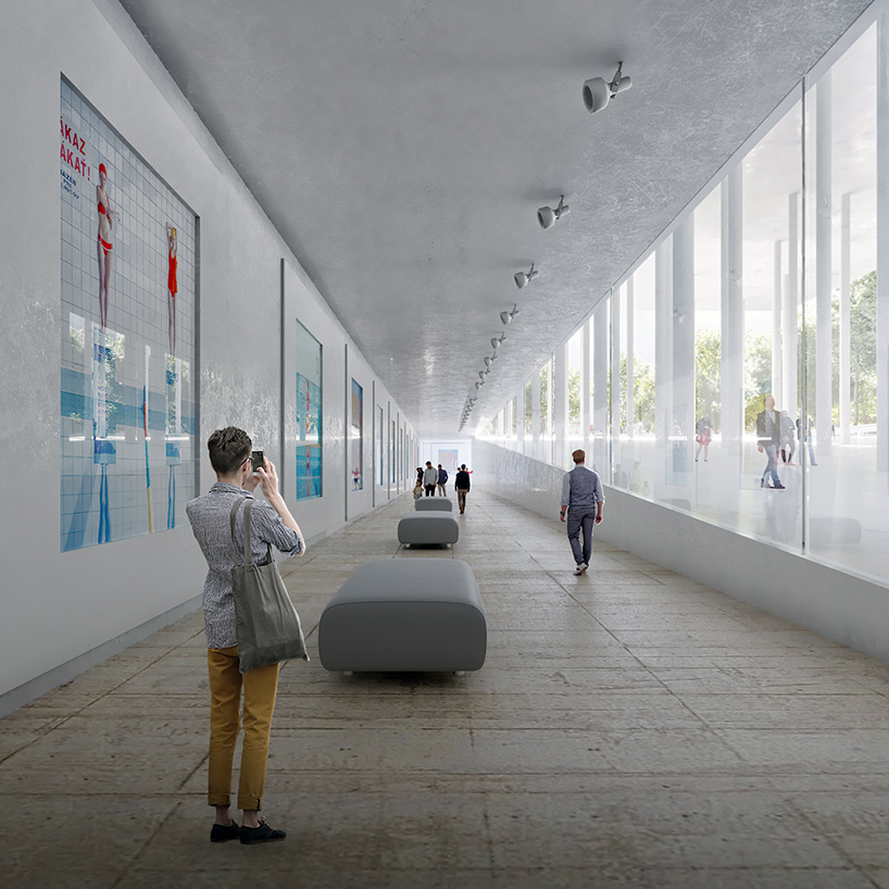 however, the architects claim that the intervention also gestures to something more profound. ‘the museum is in a process of opening itself up to the city,’ continues U-TT. ‘it operates fluidly in the face of frozen politics. it is playful though bearing the weight of a painful past. covering the current structure will create new spaces of engagement and interaction, while drawing in the people of sarajevo as a center of possibility.’ in this way the exhibition seeks to support an alternative model of urban regeneration.