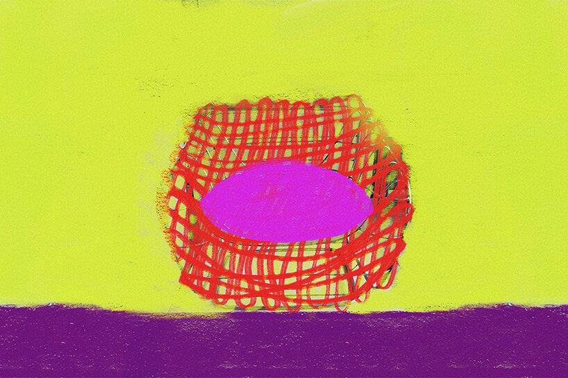 a surreal grassy set captures the chair’s glossy loopy volumes