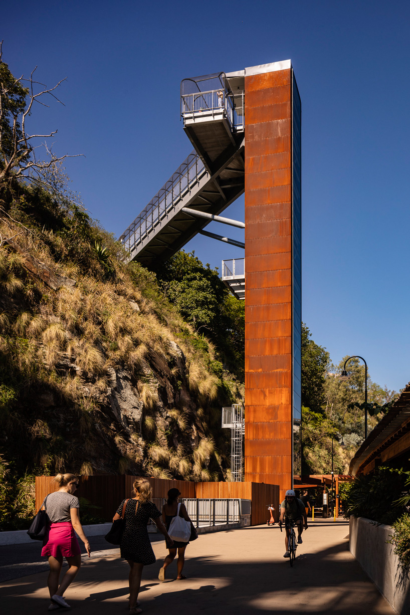careful urban and landscape design has seen the site complete brisbane’s pedestrian links to new farm river walk and brisbane CBD through the creation of a shared pedestrian and cycle path through the center of the site. two new public lifts further activate the waterfront location, enhance safety and usability. as a result, the previously inaccessible site now accommodates for an estimated 21,000 visitors per week. the redevelopment also addresses waste from business operations, and employs ways to reduce it. 95% of all food waste is composted on site, while all glass, cardboard and some plastics are separated and recycled. the precinct brewery and coffee roastery produces goods on-site for restaurants and event catering with on-site gardens contributing to the production of fresh food as well as supporting local growers and makers.