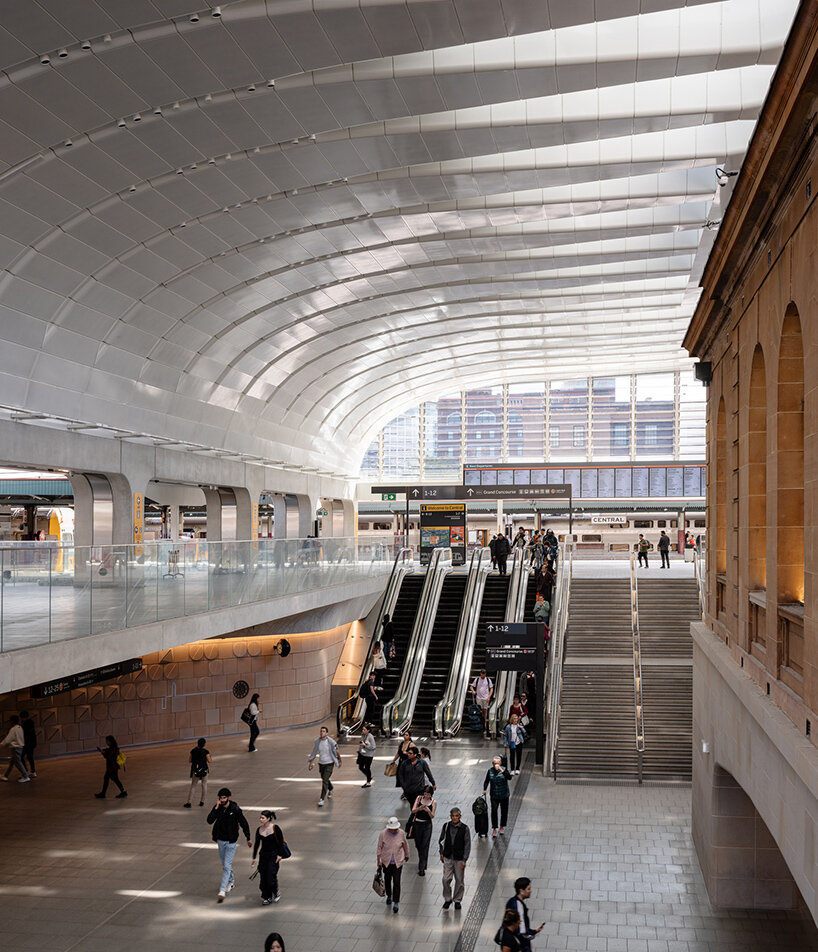 The reimagined Northern Concourse honors the station’s Edwardian architecture. The new roof design, featuring kite-shaped skylights, contrasts with the heritage sandstone buildings, creating a modern yet respectful addition to the historic station. The project has earned a 6-Star Green Star Design and As Built rating, with sustainability at the core of the design.