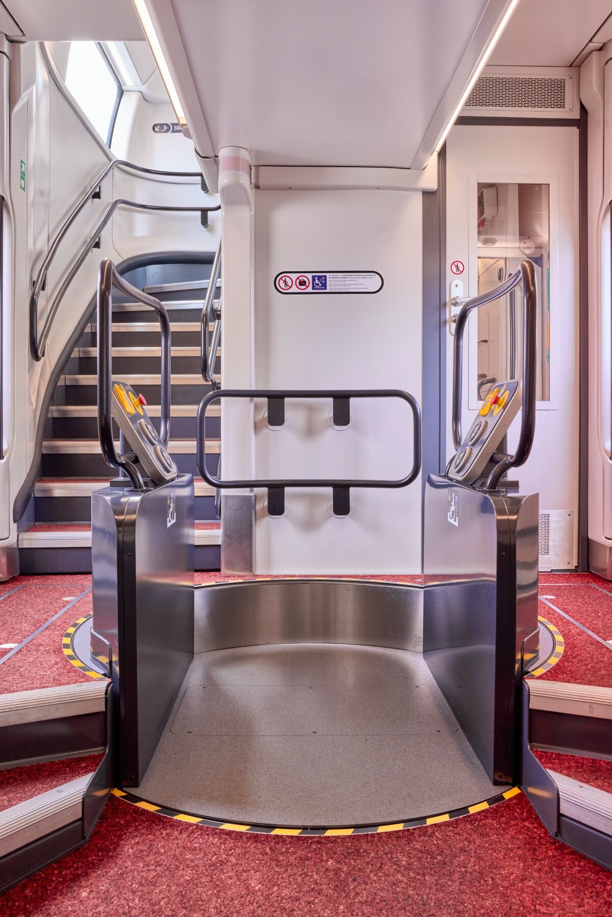 wheelchair spaces by the train windows are dedicated to persons with reduced mobility