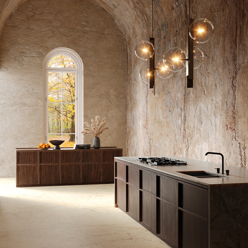 Armonie Pietra surfaces combine graphic depth and subtle tonal variation