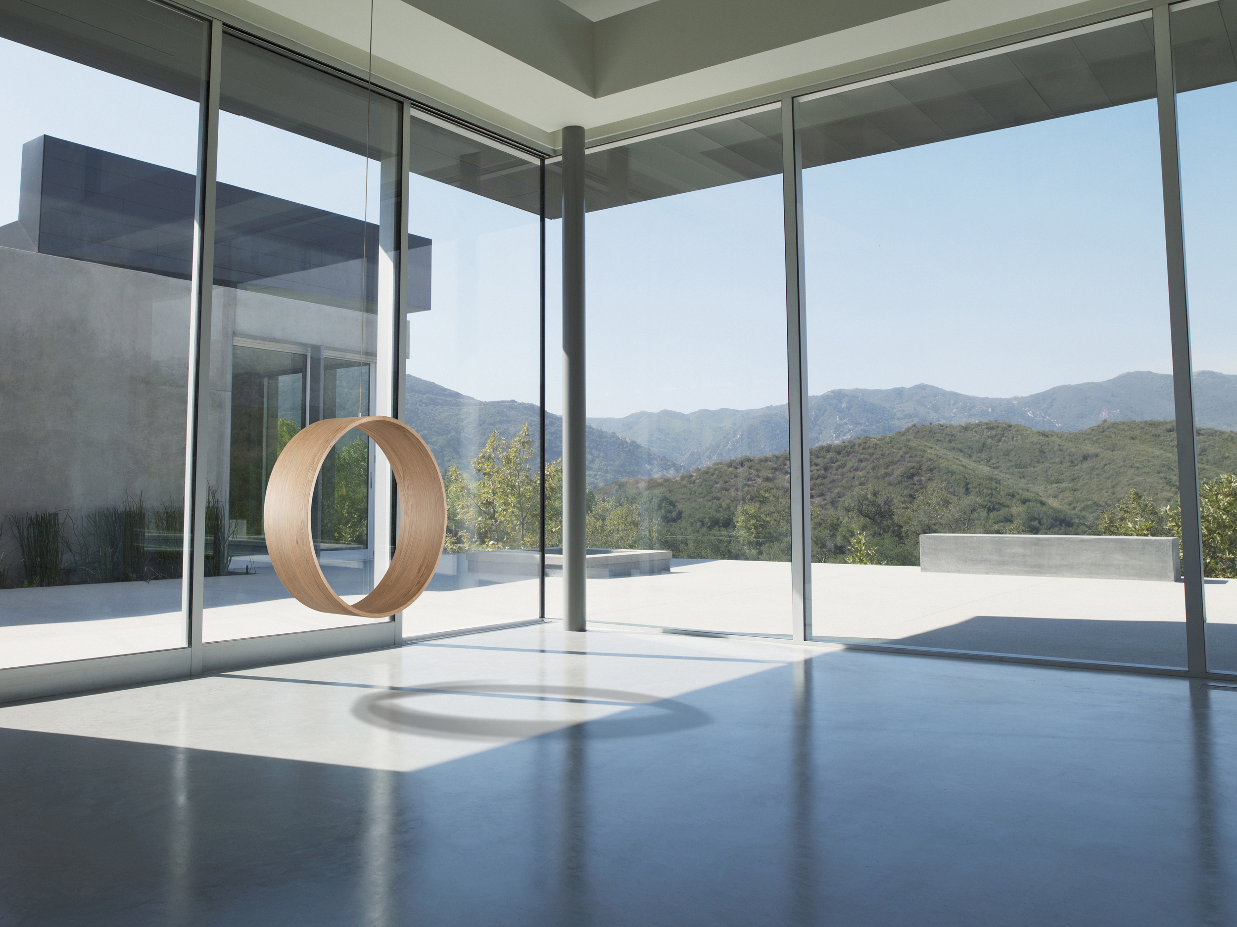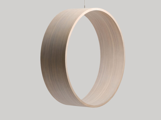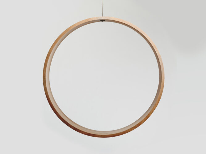 The high quality and minimalist design make it a desirable piece for a living area, hall, reception, restaurant, and cafes. The unique addition to any home, the veneered oak circle swing hangs from the ceiling encouraging fun and exercise. Comfortable and functional, it’s perfect