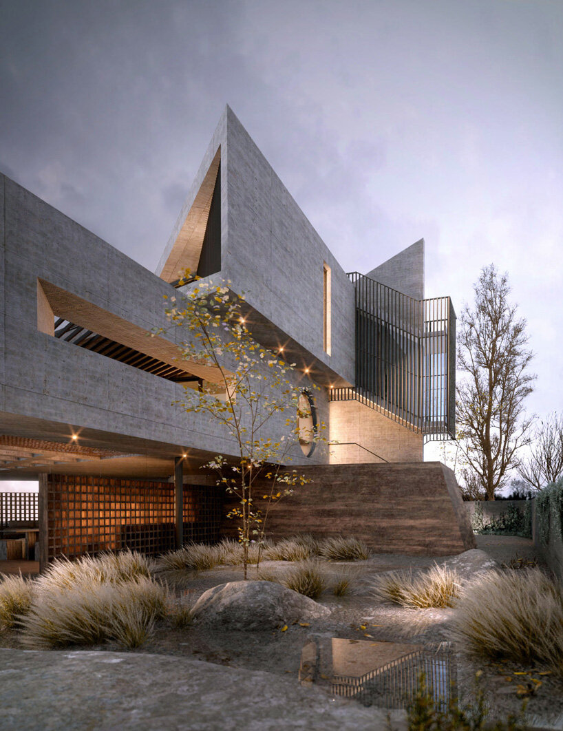 DB: Your projects are often characterized by distinct geometric forms, clear and bold material choices, and yet, somehow, a very organic and harmonious coexistence with their surrounding landscape. Where do you draw inspiration from when it comes to forms and shapes? How do you balance organic integration with bold geometry? What materials do you prefer to work with, and how do they contribute to the identity of your buildings?