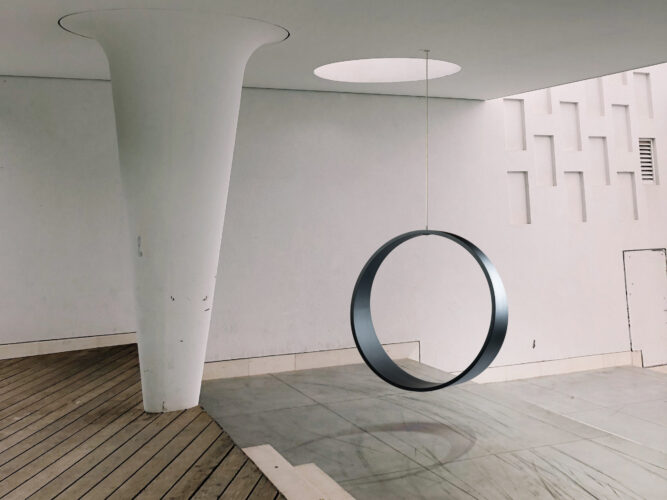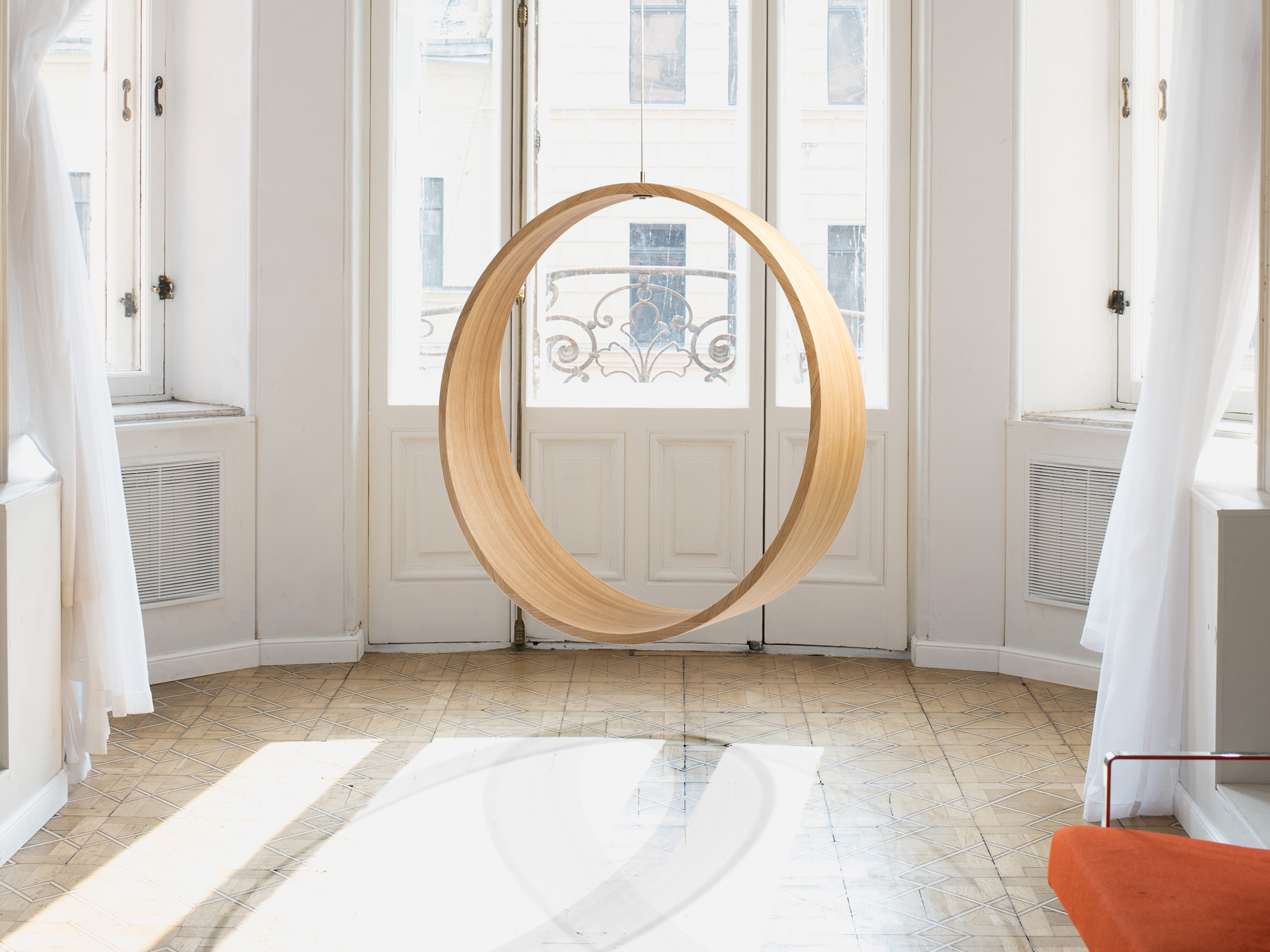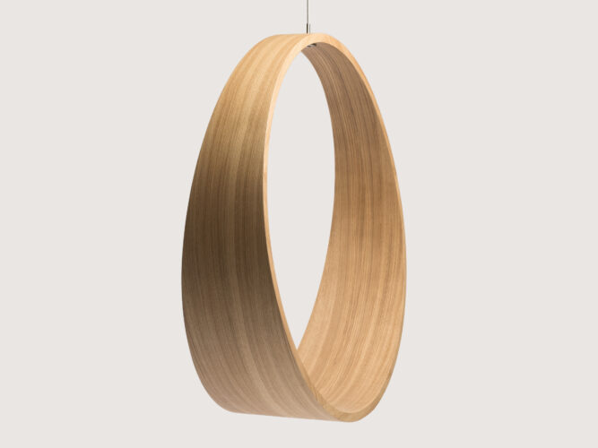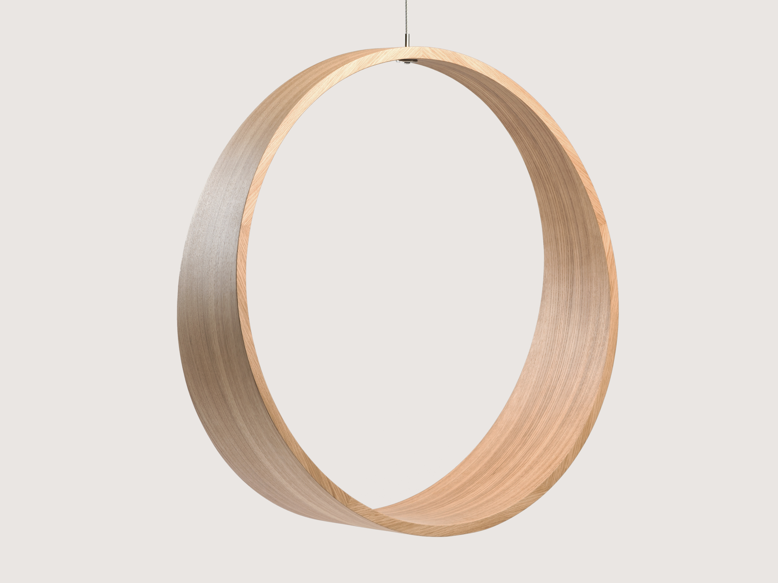 The high quality and minimalist design make it a desirable piece for a living area, hall, reception, restaurant, and cafes. The unique addition to any home, the veneered oak circle swing hangs from the ceiling encouraging fun and exercise. Comfortable and functional, it’s perfect