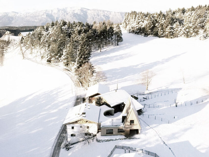 instead of building upwards, the design extends horizontally along the terrain’s natural slope