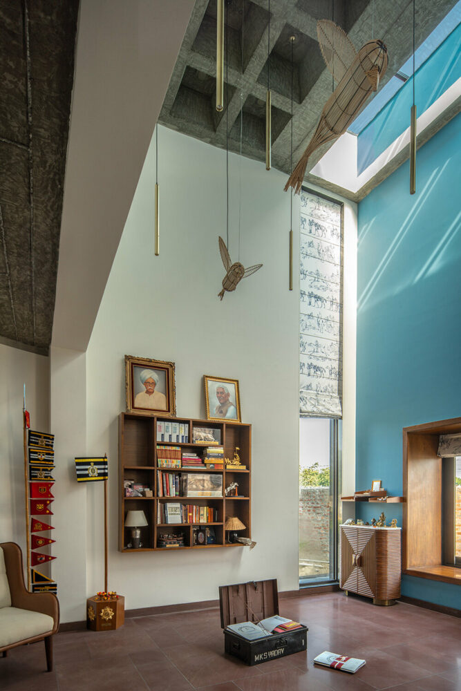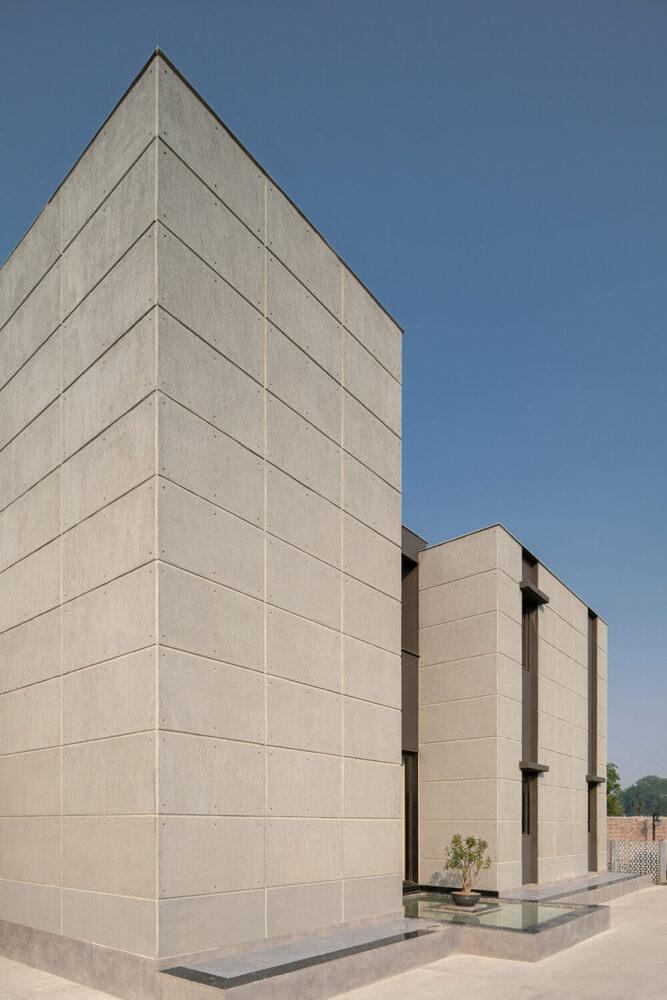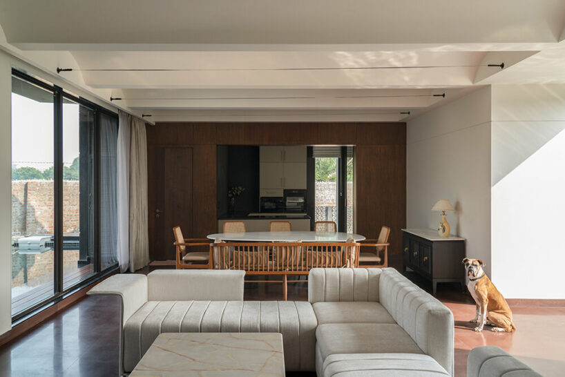 in the alloa hills of india, studio sangath's weekend home dissolves into the landscape through terracotta tones and an open courtyard plan.