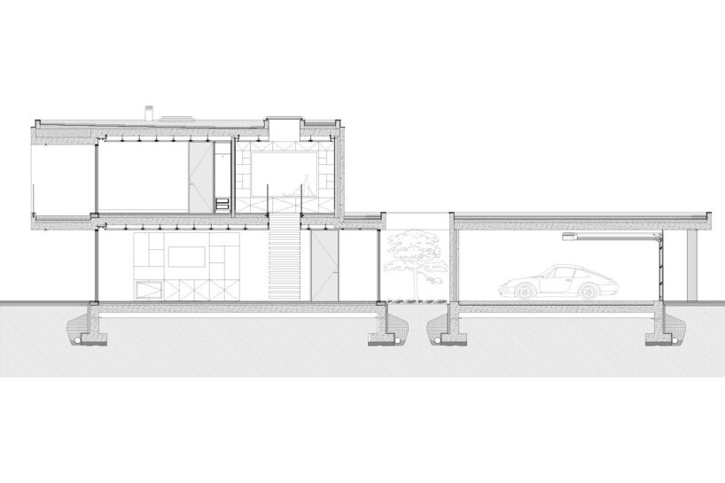 the ground floor houses social spaces, including an open-plan kitchen, living room, and office