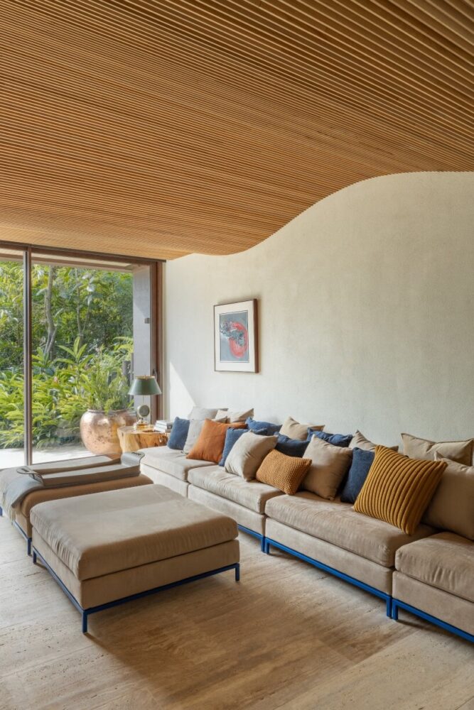in the alloa hills of india, studio sangath's weekend home dissolves into the landscape through terracotta tones and an open courtyard plan.
