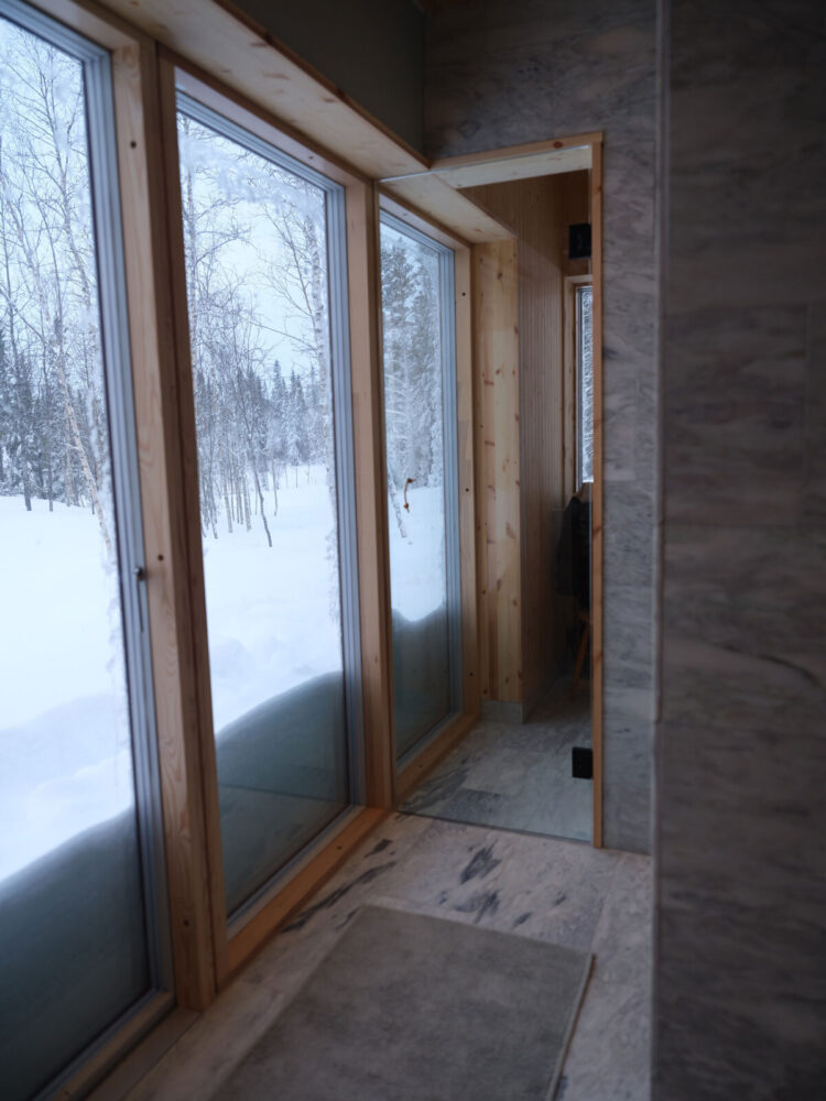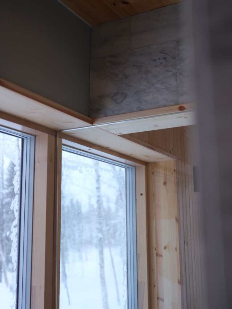 the steep roof pitch is designed to endure heavy snowfall, adapting the house to its setting