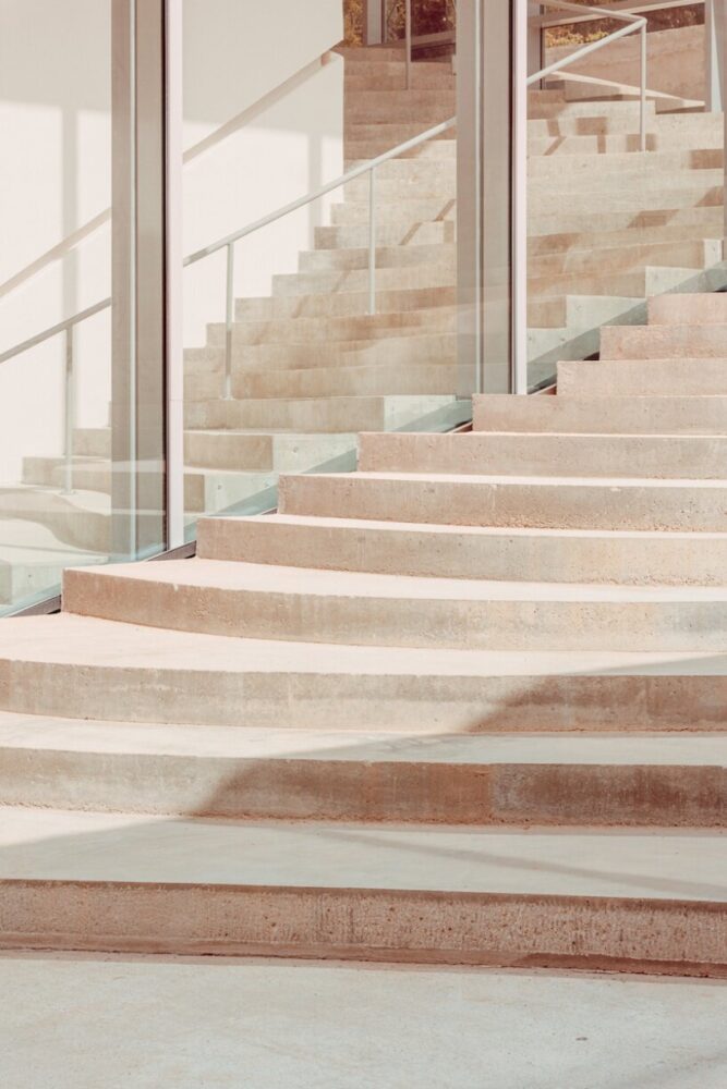 An internal street connects the school’s different levels and extends outside, resembling the steps of an open-air amphitheater. The white stone staircase, designed in collaboration with artist Pauline Guerrier, mirrors the contours of the surrounding landscape while evoking the steps of an ancient philosophical school. Here, Amelia Tavella’s integration of art into the architectural design serves as an educational tool, enhancing children’s connection to beauty and creativity.
