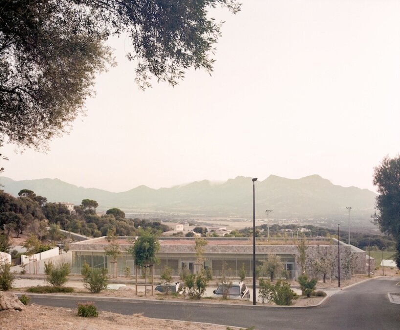 The school has embraced Lumio, marrying the village and its surroundings, including its landmarks: the tower, the bay, and the citadel of Calvi overlooking the sea — the other realm. A single obsession guides the design: to follow the land’s curves, slip into them, and magnify them, while drawing on Corsica’s terraced farming structures, known as restanques. Three buildings, three pulsations,’ reflects the architect.