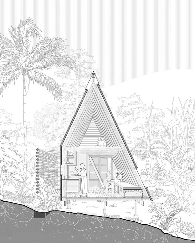 the interior layout is flexible with moveable elements adapting to occupants’ needs | image © JAG Studio