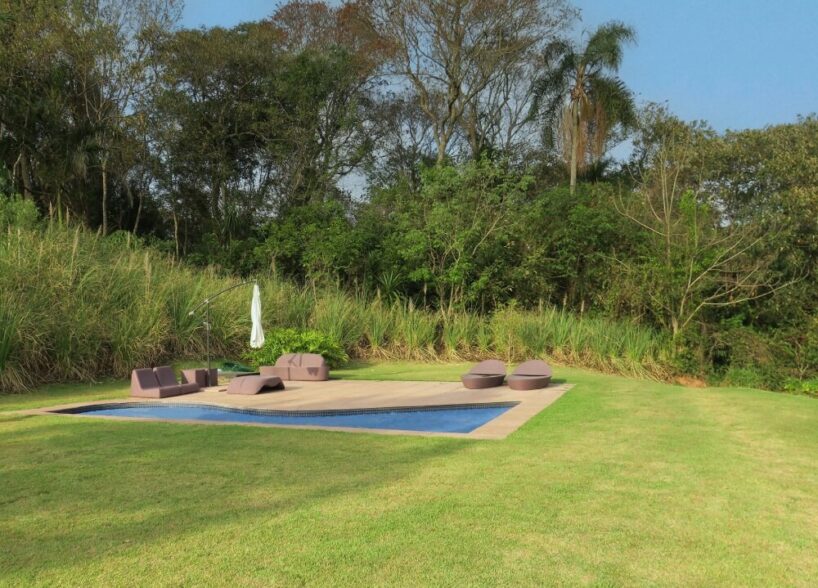 in the alloa hills of india, studio sangath's weekend home dissolves into the landscape through terracotta tones and an open courtyard plan.