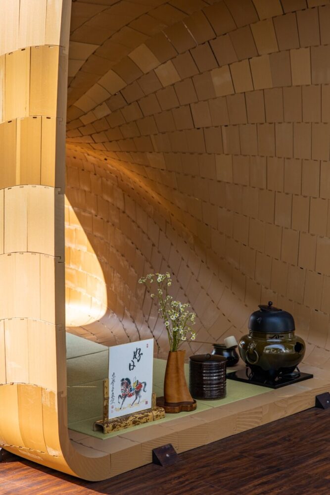 an intimate wooden enclave that gently twists to echo the Arabian sand dunes