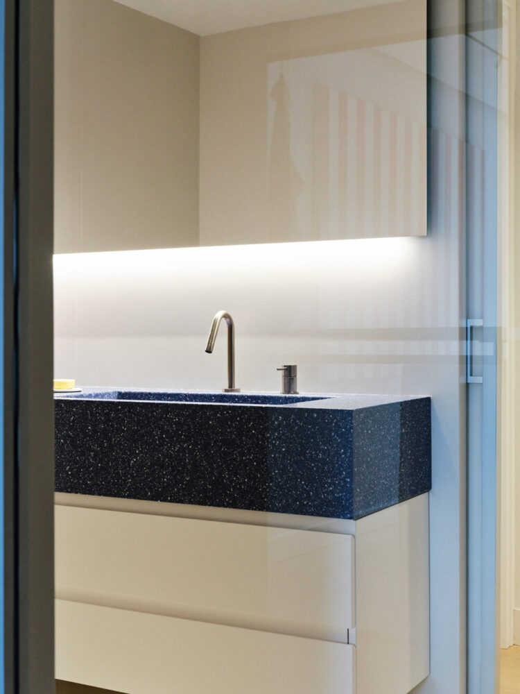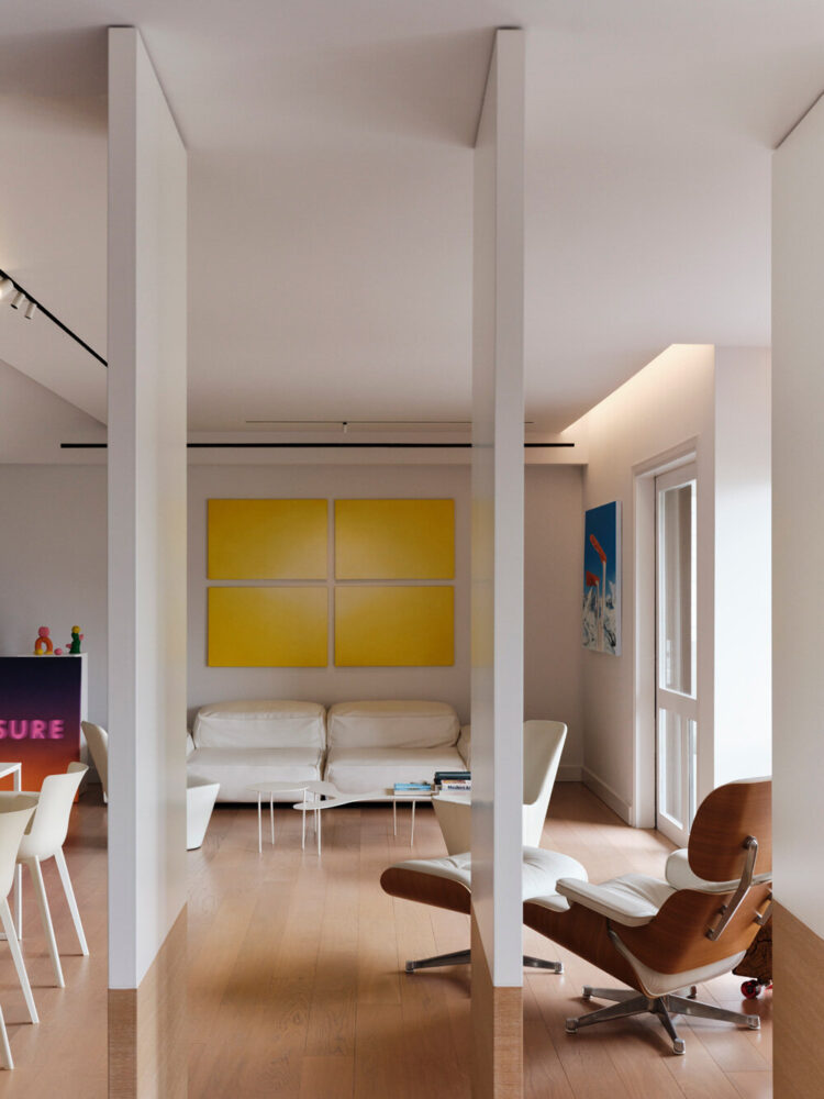 the monochromatic kitchen dissolves into the white interior palette