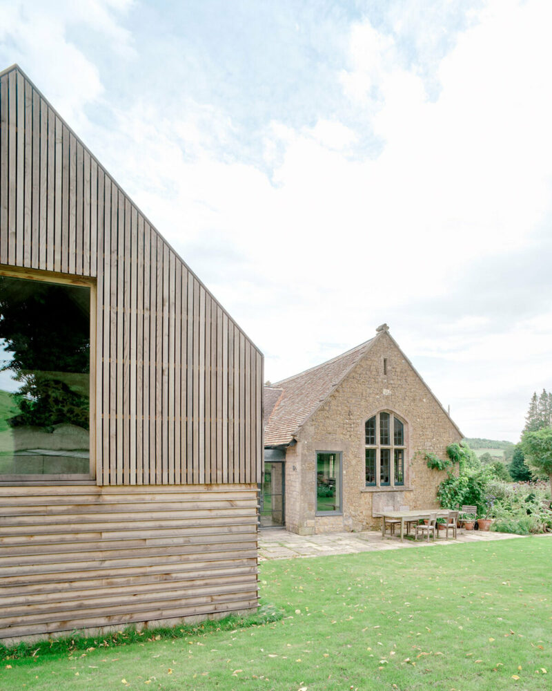 sustainable English sweet chestnut clads the extension, designed to weather gracefully